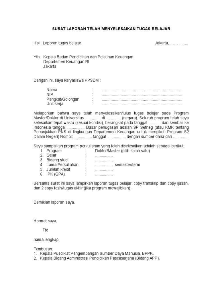 Contoh Laporan Selesai Tugas Belajar Pdf